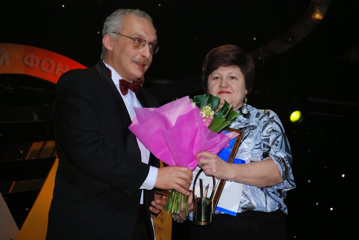 Инновационный проект «Технология упрочнения дисперсионно-твердеющих сплавов при механических и тепловых воздействиях» удостоен приза и премии на конкурсах: - по программе «Старт», г. Нижний Новгород (2006 г.) - «50 идей для Республики Татарстан» (2008 г.) –«Бизнес, инновации, технологии» (за качество подготовки, 2009 г.). Награду вручает А.Друзь. |